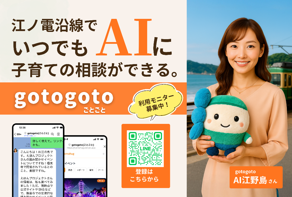 今回のプロジェクトの軸となるアプリ『gotogoto(ごとごと)』を2026年2月10日から実証実験として、運用を一部で開始いたします。本アプリ内ではプロジェクト内の独自アバター「AI江野島(えのしま)さん」に、子育てなどの悩みを気軽に相談することができます。さらに、沿線住民限定のコミュニティや、その時に思ったことや感じたことなどを気軽に投稿できる場を設ける予定で、その他にも、子育てに関連した情報などの“つながる”サービスを提供していく予定です。本アプリは無料でご利用が可能です。